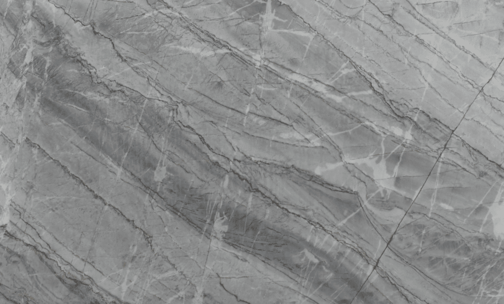Beverly Blue é um quartzito de fundo azul claro e seus veios em tons de cinza fluem como rios de névoa, nos levam em uma jornada através do tempo geológico, onde cada linha conta uma história distinta.